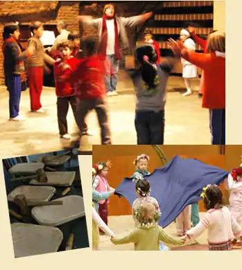 - Se incorpora el arte en variadas expresiones como un medio de aprendizaje en las materias curriculares. El canto, la música, el movimiento y las manualidades no sólo tienen sus clases especiales sino que son recursos utilizados en matemática, lengua o ciencias para la elaboración de conocimientos específicos.